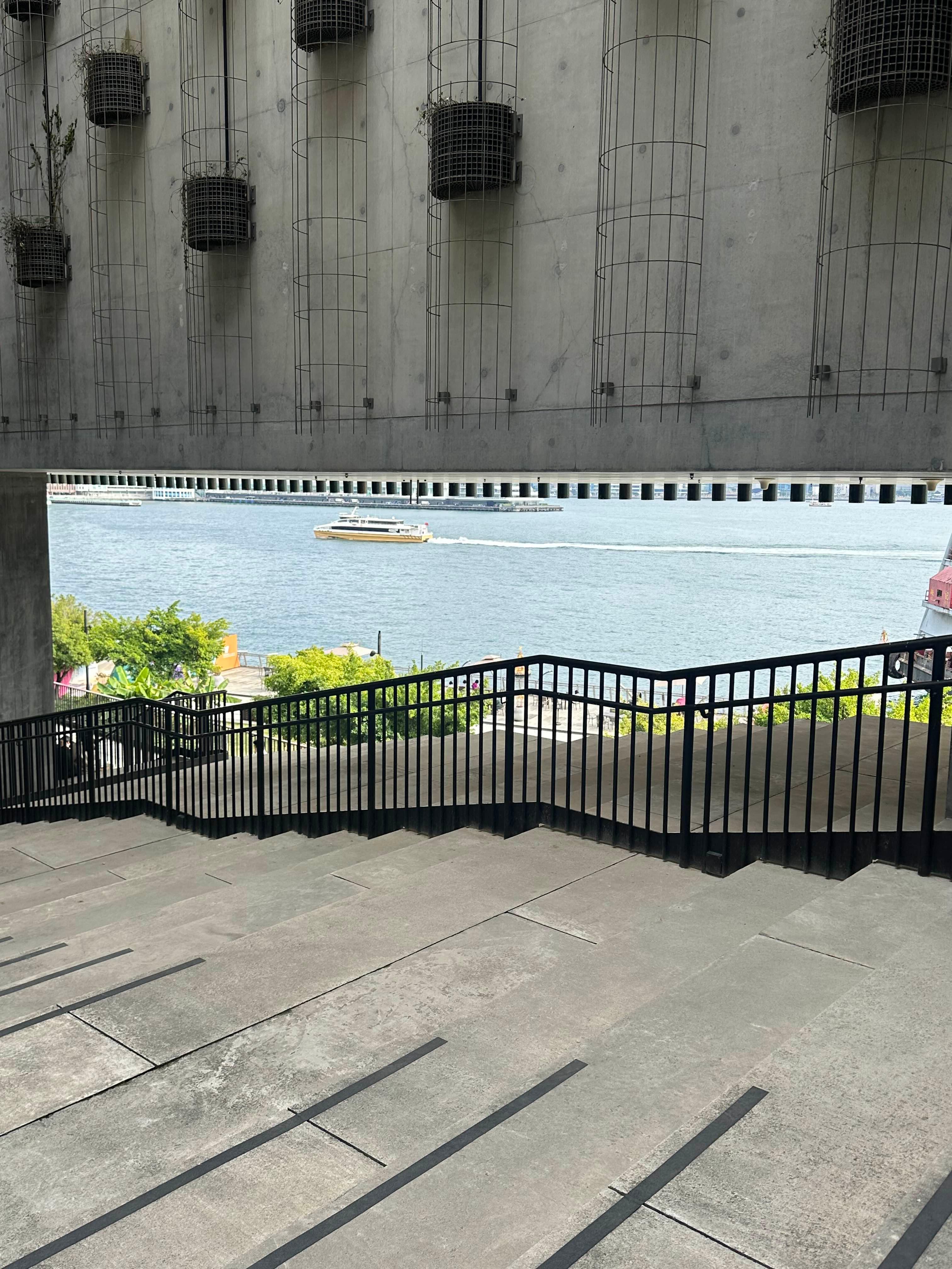 뮤지엄 자체가 높고 탁 트인 구조라, 위층 전망 구역에 올라서면 빅토리아 하버와 홍콩 섬의 스카이라인이 시원하게 한눈에 들어와요. 가족사진 찍기 딱!!